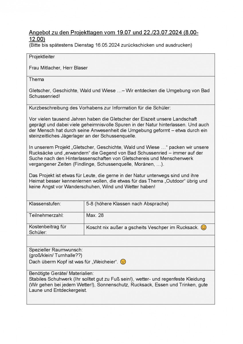 Projekttage 2024 (aktualisiert!)