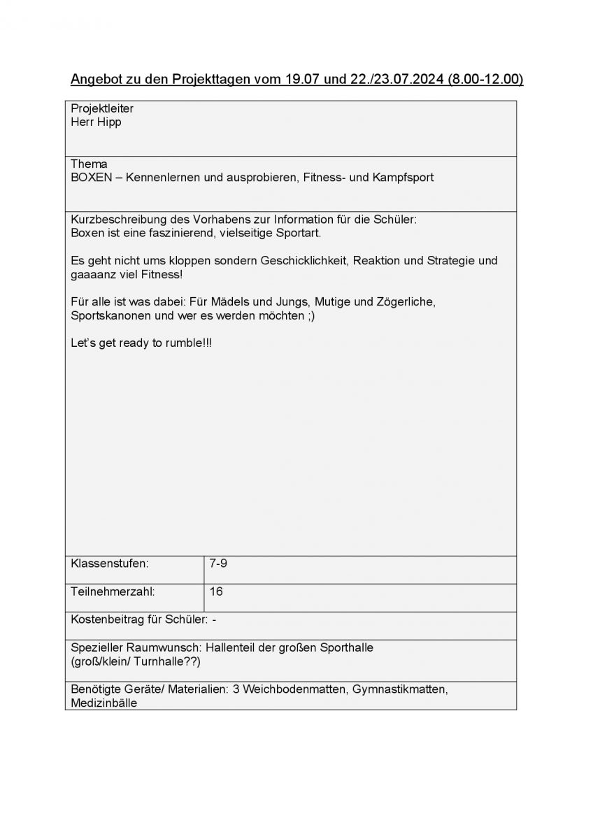 Projekttage 2024 (aktualisiert!)