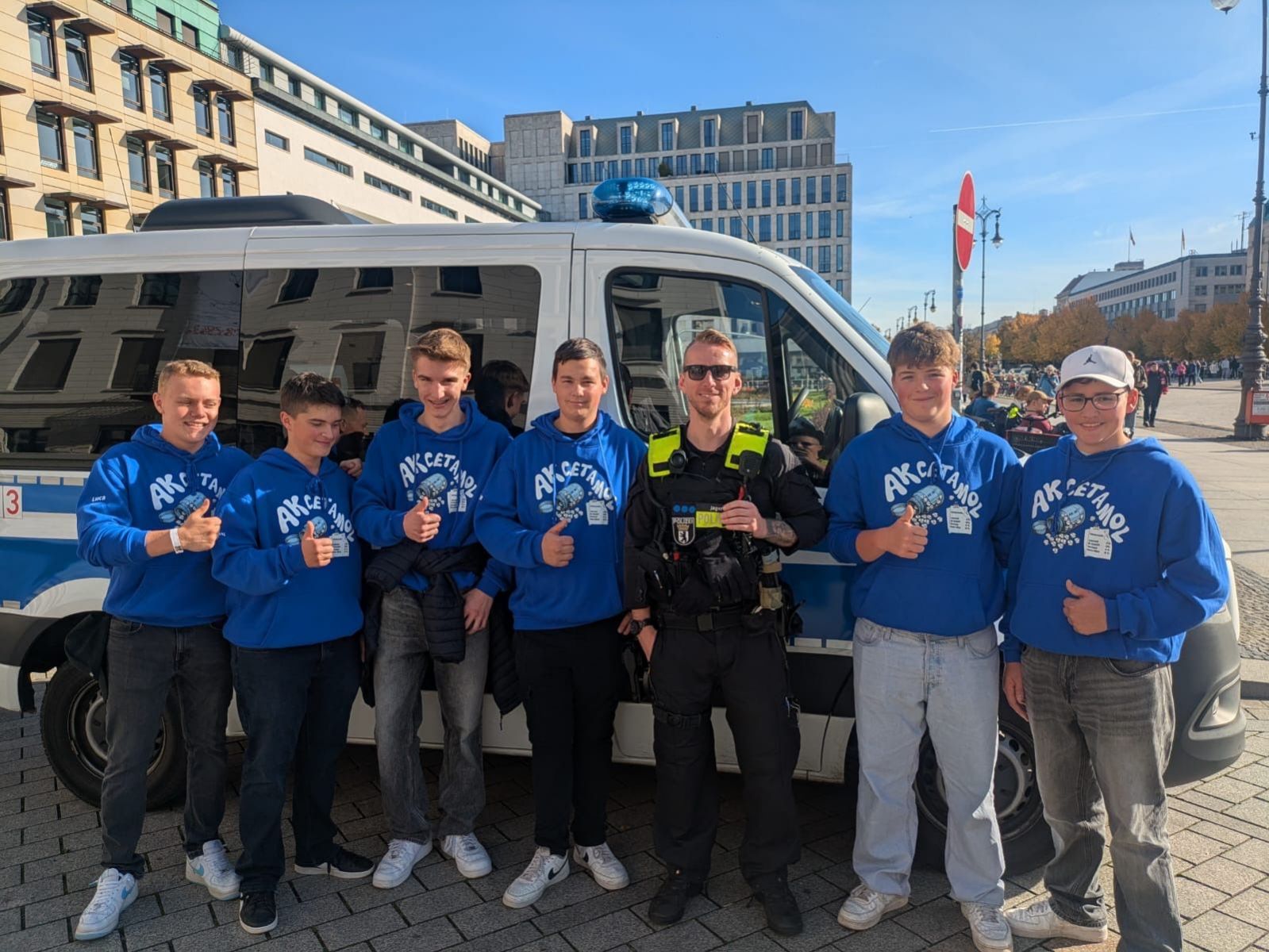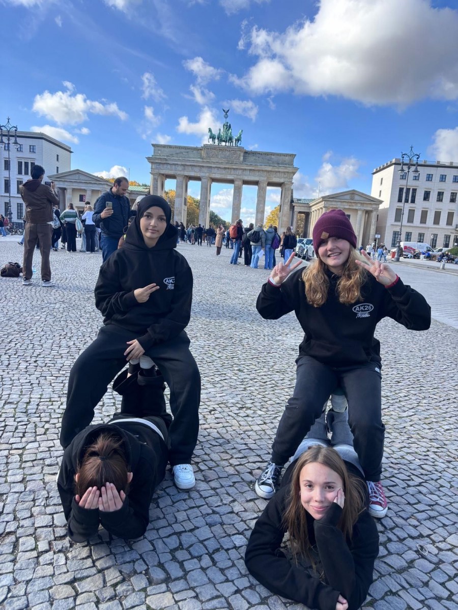 Natürlich konnten wir nicht auf die Zimmer, sondern mussten direkt zum Brandenburger Tor, um Bilder zu machen. Erster Programmpunkt? Eine Selfie Challenge. Es schien eigentlich ganz einfach, man musste z.B. ein Bild mit einem „echten Berliner“ machen. Aber da hat sich rausgestellt, dass es keine echten Berliner in Berlin gibt, zumindest nicht beim Brandenburger Tor oder in der Umgebung. Danach konnten wir nicht direkt zum Hotel, sondern mussten zum Humboldt-Museum. Als wir endlich zum Hotel durften, hatten wir den Fehler gemacht, den Bus zu nehmen. Es war ein Albtraum, da zusammengequetscht zu stehen. Eine eigentlich kurze Fahrt hat eine halbe Stunde gedauert. Alle waren kaputt, als wir in die Zimmer durften.