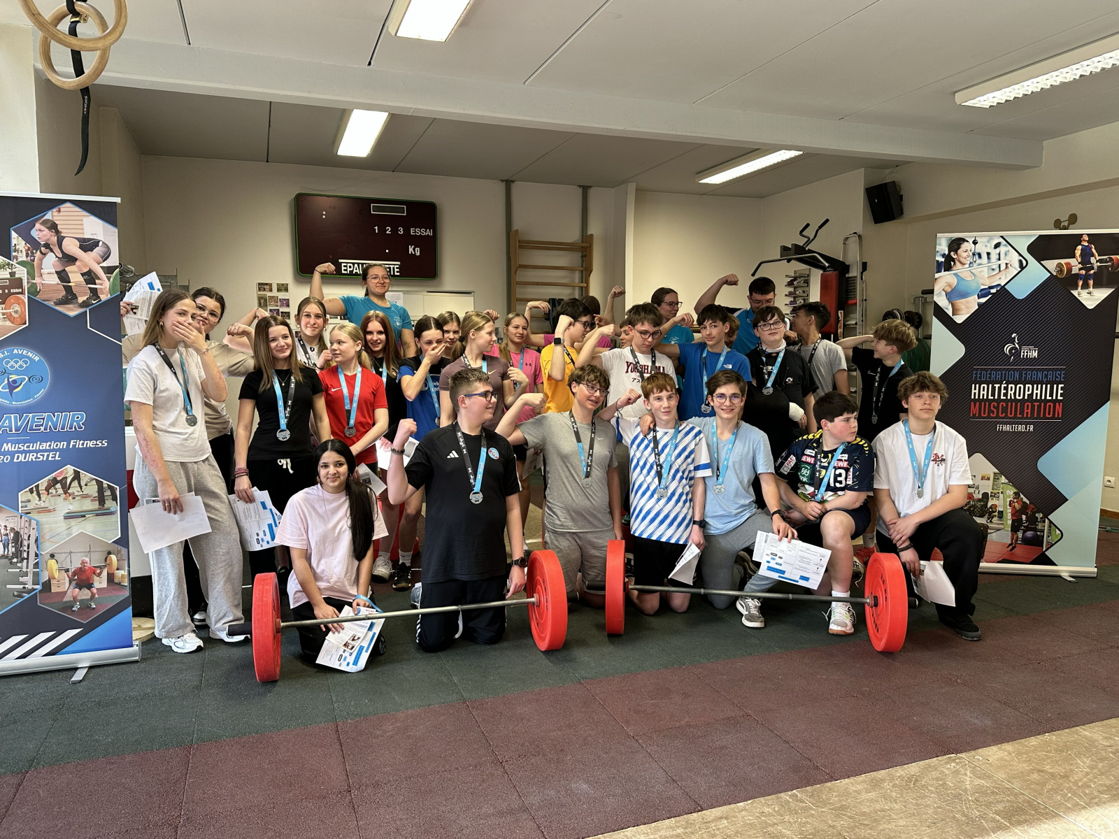 Nach einem Empfang in der Schule und anschließendem Unterricht, genossen wir ein Schnuppertraining im Kraftsportverein in Durstel, wo auch das Foto entstand. Unter fachkundiger Anleitung wurden wir in den Kraftsport eingeführt und haben vieles über diesen Sport gelernt.